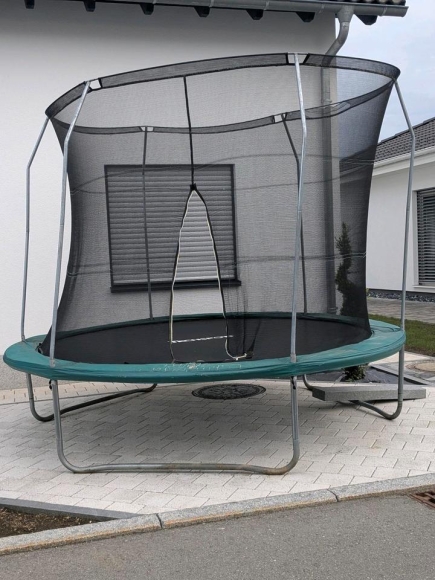 Stabiles, hochwertiges Trampolin. Hat kleine äußere Witterungsschäden, beeinträchtigt aber nicht die Funktion.