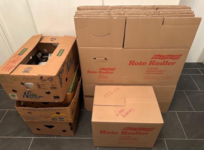 30 Stück verschiedene Umzugskartons. Auch ein paar Bananenkartons. Einmal gebrauchte für 1,50€/Stück. Mehrfach gebrauchte für 1€/Stück. Mengenrabatt. Abzuholen in Lörrach.