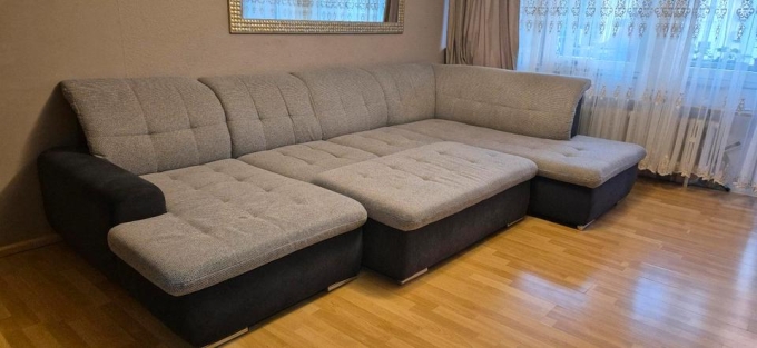 Diese moderne Wohnlandschaft lädt Sie zum Relaxen und Loungen ein. Der harmonische Korpus aus einem schwarzem Microfaserbezug (100 % Polyester) und grauem Microfaserstoff (100 % Polyester), ist nicht nur optisch ein Highlight, sondern auch vom Sitzkomfort mit Polyätherschaum mit Wellenunterfederung eine Bereicherung. Dieses Sofa bietet Ihnen großzügigen Platz und kann zum Gästebett (Liegefläche ca. 282 x 128 cm) ausgezogen werden. Die Stellfläche beträgt ca. 179 x 348 x 197