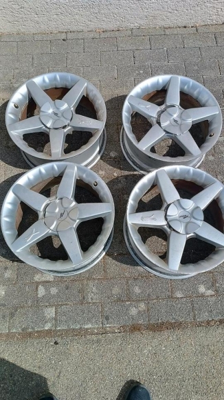 4 Alufelgen 7,5x17 ET35 für ältere Ford Modelle. Mit Bordsteinabschürfungen, nichts Schlimmes . Stück 40 € 4 Stück vorhanden.