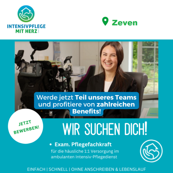 ...in der außerklinischen Intensivpflege für eine 1:1 Versorgung eines unternehmungslustigen, maskenbeatmeten Patienten in Zeven.