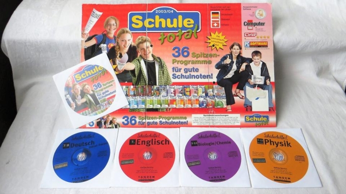 Ich liefere die 4 CD’s der informativen Lernsoftware: „Schülerhilfe – Schule total 2003/04“, wie auf den Bildern zu sehen.